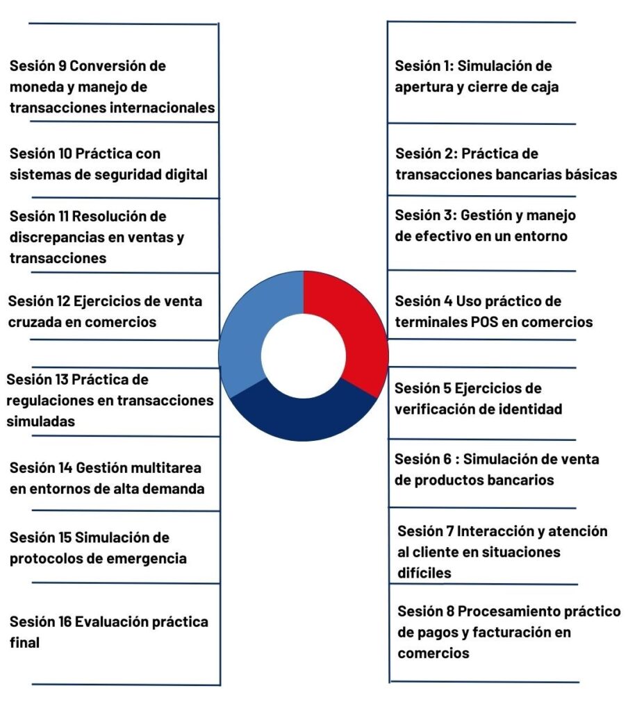 El curso «Cajero Bancario y Comercial» está diseñado para preparar a los participantes en las habilidades y conocimientos esenciales requeridos para desempeñarse con eficacia y eficiencia en el rol de cajero dentro de instituciones bancarias y comerciales. A través de una combinación de instrucción teórica y ejercicios prácticos, los estudiantes aprenderán sobre las operaciones diarias, manejo de efectivo, procesamiento de transacciones, interacción con el cliente, y cumplimiento de regulaciones y protocolos de seguridad.